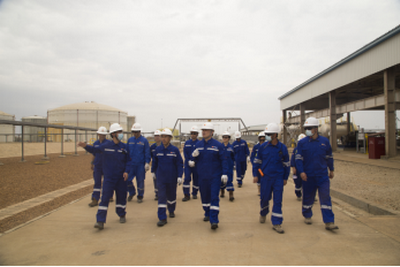 王大使一行先后走访油气处理中心、丛式井井场、泥浆处理站、钻井平台等石油生产一线站点,还参观了岩芯和油样标本库、项目基地后勤保障设施,详细了解油田生产运营、安全防护、属地化管理、职工生活条件等情况。王大使同现场中乍双方管理团队及在岗员工亲切交流,对他们团结协作、恪尽职守、确保油田安全稳产给予鼓励和赞扬。