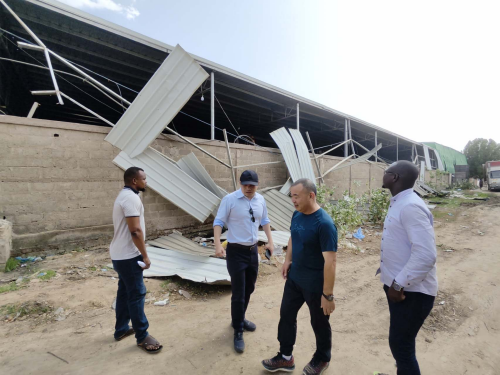 2024年6月19日,驻乍得大使王晰宁来到在18日夜乍得首都恩贾梅纳市军火库爆炸中受损的中国侨企塑料制品厂和面粉厂,看望在乍侨胞及侨企当地员工。