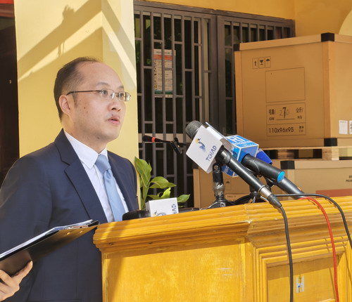 秦代办代表中方致辞,祝贺中心顺利落成,表示中方愿积极落实中非卫生健康伙伴行动,与乍方携手推进现代化,共筑命运共同体。