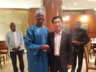 2015年9月25日晚,中非总理卡蒙宴请驻中非大使马福林。总理办公厅主任和三位部长级顾问出席。