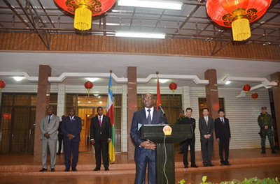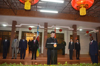 马大使在致辞中简要回顾了新中国67年来的光辉历程,介绍了中国未来发展的战略布局和奋斗目标,表示中国的发展为推进世界发展和国际合作提供了广阔前景,中方一贯秉持“真实亲诚”对非关系理念,不断深化拓宽双方各领域务实合作。中国愿在落实中非合作论坛约翰内斯堡峰会成果框架内,积极参与中非战后重建,一如既往地支持中非和平发展事业,更好地造福两国人民。