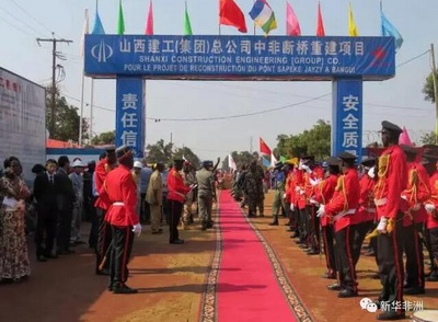马福林大使在致辞中表达了中国政府对中非人民的问候。他说,萨贝格桥重建项目是中国政府采取快速措施支持中非政府和人民重建国家的诠释,它象征中国政府与中非合作的新起点。
