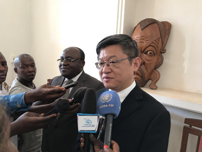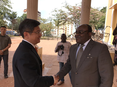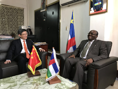 2018年5月3日,驻中非大使陈栋会见班吉市长纳孔波。