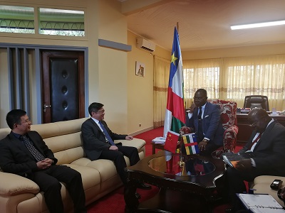 2018年5月23日,驻中非大使陈栋会见中非财政和预算部长东德拉,双方就两国经贸合作交换意见。