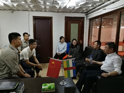 2018年5月23日,驻中非大使陈栋走访四达时代和江苏国际两家企业中非办事处驻地。