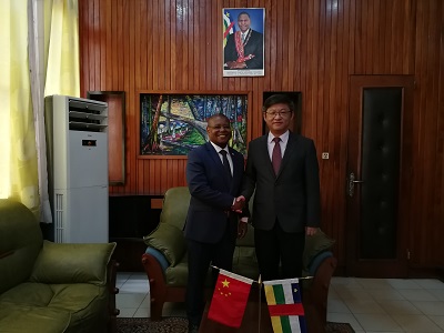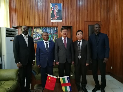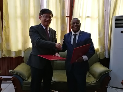 2018年6月5日,中国援中非医疗设备交接仪式在中非卫生部举行。驻中非大使陈栋与中非卫生部长松塞分别代表两国政府在交接证书上签字。