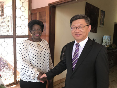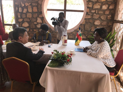2018年6月6日,驻中非大使陈栋会见中非总统夫人、中非妇女儿童基金会创始人布丽吉特·图瓦德拉。