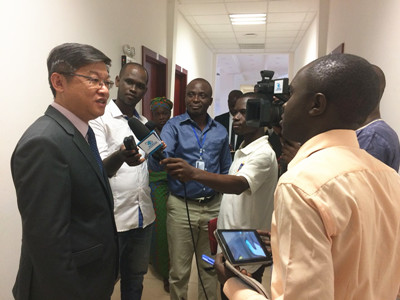 会见结束后,陈大使接受中非当地主流媒体采访。