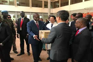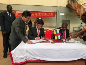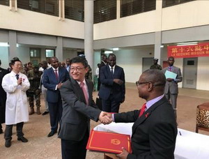 2018年8月6日,中国援中非共和国药械交接仪式在第16批援中非医疗队工作所在地中非友谊医院举行。中非总统图瓦德拉出席仪式,在其见证下,驻中非大使陈栋和中非卫生部长皮埃尔·索姆塞分别代表两国政府签署了捐赠交接证书。