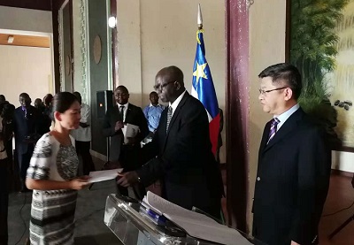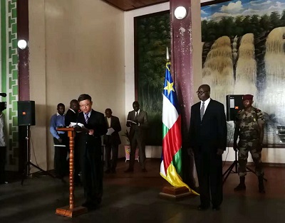 2018年11月5日,中非共和国国民议会为10月4日在中非遇害的三名中国公民举行悼念仪式,并向遇害者家属代表移交募捐善款。中非国民议会议长洛朗·恩贡、外交部长杜巴纳、议会友华小组主席马康戈、80余名中非议员,以及驻中非大使陈栋等使馆全体外交官、中资企业、援中非医疗队、华侨华人代表及遇害中国公民家属代表等160余人出席。