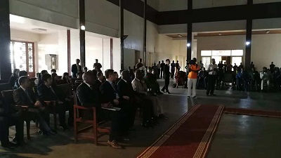 陈栋大使还同80余名参加募捐的议员一一握手表示感谢,恩贡议长亦同现场中方人员分别握手表示慰问。