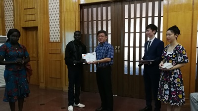随后,使馆向中非学生们赠送了书包、文具、书本等学习用品。最后在悠扬的中国音乐中,来宾们品尝着使馆精心准备的中国美食。