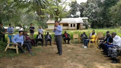 盖村百余名男女老少自发来到村中大树下议事现场,并在村落小广场升起两国国旗,热烈欢迎中国大使到来。陈大使抵达后与迎接人员一一握手致意,并同大家在村中教堂内共同观看了菌草培训班有关视频。视频生动展示了25名中非学员在福建农林大学学习菌草技术有关情况,当该村学员代表出镜时,现场爆发出阵阵掌声和喝彩,菌草技术为解决当地粮食安全及贫困问题提供了新的方案,让村民对未来鼓起了信心。