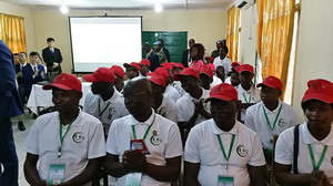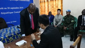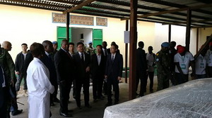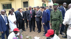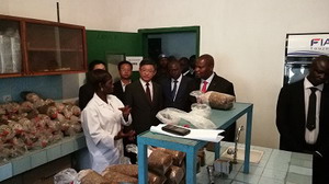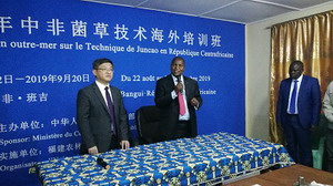 2019年9月11日,中非共和国总统图瓦德拉来到中非农学研究院参观由福建农林大学菌草专家指导建立的中非首条菌草种菇技术生产线。驻中非大使陈栋、中国菌草技术专家、中非农学院院长、农业部官员,以及中国援中非菌草技术海外培训班全体中非学员和今年赴华参加菌草培训的优秀学员代表共100余人陪同参观并做现场演示。