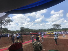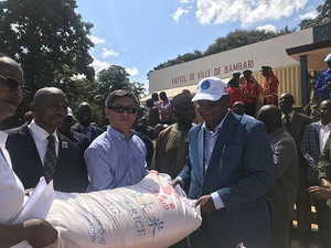2019年9月12日,应中非共和国总统图瓦德拉邀请,驻中非大使陈栋赴中非内地省份瓦卡省省会班巴里市出席中国菌草技术推广与粮援交接等活动。中非国民议会议长恩贡、政府总理恩格雷巴达以及经济计划、农业、畜牧业、人道事务等内阁部长一同前往。