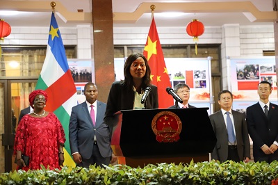 2019年10月1日,驻中非大使陈栋在使馆举行庆祝中华人民共和国成立70周年国庆招待会。中非共和国总统图瓦德拉夫妇、国民议会议长恩贡夫妇、总理恩格雷巴达、各共和国机构主席及外交、国防、农业、卫生、能源等近20名内阁部长、各界友好人士、驻中非外交使节和国际组织代表、中国援中非医疗队、中资企业及华侨华人代表等300余人出席招待会。