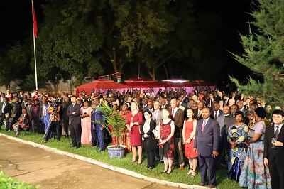 陈大使在随后的致辞中回顾了新中国成立70年来,中国共产党带领中国人民取得的辉煌成就,并阐释了“中国模式”成功的奥秘。陈大使高度评价双边关系发展及农业、卫生、文化、基础设施等各领域务实合作成果,并针对今年在中非落地生根的中国援中非菌草技术向中非政府及驻中非外交使团发出建立菌草蘑菇生产线和合作倡议,以实际行动践行人类命运共同体理念。陈大使并向旅中非全体华侨华人送上国庆祝福,号召大家为实现“两个一百年”目标做出更大贡献。