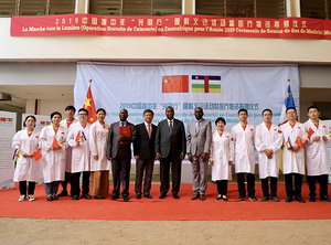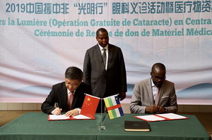 2019年11月27日,援中非“光明行”眼科白内障手术义诊活动及设备药品捐赠仪式在中非首都班吉中国援建的友谊医院举行。中非总统图瓦德拉、驻中非大使陈栋、中非卫生部办公厅主任瓦里克马、班吉友谊医院院长凯特、“光明行”项目专家组全体成员及第17批中国援中非医疗队全体队员参加活动。