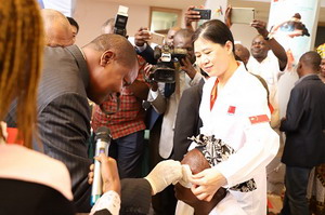 在首先举行的设备药品捐赠仪式上,凯特院长发表致辞,他表示,此次中国政府向班吉友谊医院援助的新一批尖端医疗设备及药品极大促进了两国医疗合作发展,在此向中国大使表示最诚挚的感谢。