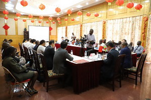 陈栋大使首先致辞,结合幻灯片介绍新冠肺炎疫情整体防控情况。他表示,疫情发生以来,中国共产党和中国政府始终把人民群众生命安全和身体健康放在第一位,把疫情防控作为首要任务。习近平主席亲自部署、亲自指挥,中国政府举全国之力抗击疫情,采取了远超世界卫生组织建议和《国际卫生条例》要求的最全面、最严格的一系列防控举措。目前治愈人数不断上升,湖北省以外的中国其他各省确诊人数连续5天直线下降,充分表明中方的举措是积极有效的,在中国共产党坚强有力领导下,中国政府和人民有决心、有信心、有能力打赢这场疫情防控阻击战。