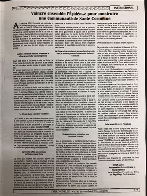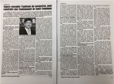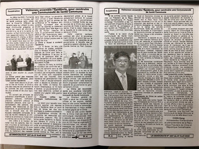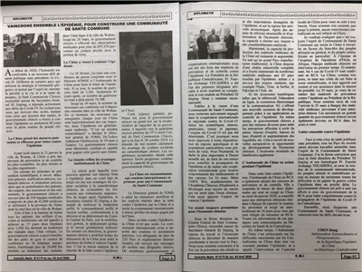 2020年4月2日至7日,驻中非大使陈栋在《中非晨报》、《燕子报》、《传媒无限报》、《民主报》等中非主流媒体发表署名文章《共同应对新冠肺炎疫情,构建卫生健康共同体》。全文如下: