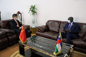 仪式后,恩贡议长会见了陈大使。