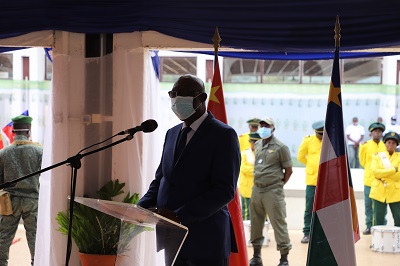 陈大使在致辞中表示,抗击新冠肺炎疫情和组织总统、议会选举是中非政府今年两项重要工作。为继续支持中非抗疫,曾经访问中非的中国全国政协副主席郑建邦和图瓦德拉总统曾访问过的福建省,今天分别向中非总统府捐赠一批抗疫物资。中国国家卫健委与中非卫生部也在今天宣告建立两国对口医院合作机制。中方希望通过有关抗疫物资援助和医疗合作行动,帮助中非战胜疫情。