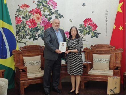 2025年12月11日,驻累西腓总领事兰和平在馆内会见伯南布哥州日报社社长维塔尔一行,向其介绍党的二十届四中全会精神及第三份《中国对拉丁美洲和加勒比政策文件》精神,双方还就加强媒体合作交换意见。