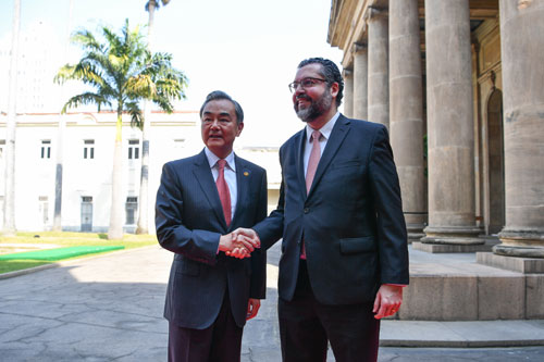 当地时间2019年7月26日,国务委员兼外交部长王毅在巴西出席金砖国家外长正式会晤。会晤由巴西外长阿劳若主持,俄罗斯外长拉夫罗夫、南非外长潘多尔和印度国务部长辛格出席。