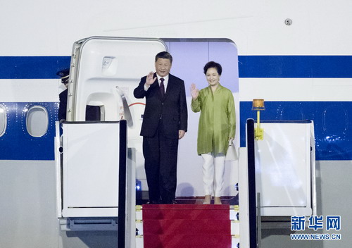 当地时间2019年11月12日晚,国家主席习近平乘专机抵达巴西利亚,出席金砖国家领导人第十一次会晤。
