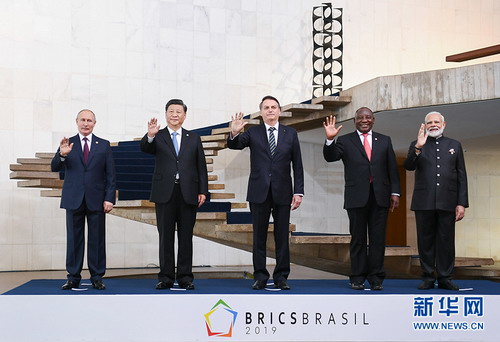 当地时间2019年11月14日,金砖国家领导人第十一次会晤在巴西首都巴西利亚举行。巴西总统博索纳罗主持会晤。中国国家主席习近平、俄罗斯总统普京、印度总理莫迪、南非总统拉马福萨出席。五国领导人围绕“经济增长打造创新未来”主题,就金砖国家合作及共同关心的重大国际问题深入交换意见,达成广泛共识。