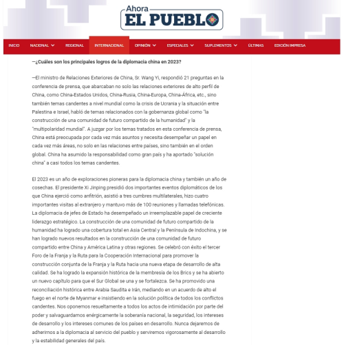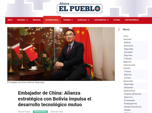 2024年4月8日,玻利维亚政府机关报《人民报》全文刊登对驻玻利维亚大使王亮的专访。