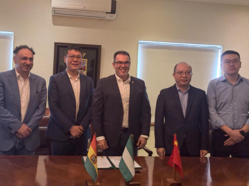 2024年4月17日,驻圣克鲁斯总领事王家雷应邀出席圣克鲁斯省政府与华为公司关于共同推进“圣克鲁斯4.0”计划合作意向书签字仪式。圣省代省长阿吉雷拉、华为公司玻利维亚分公司总经理吴昊谦等在座。