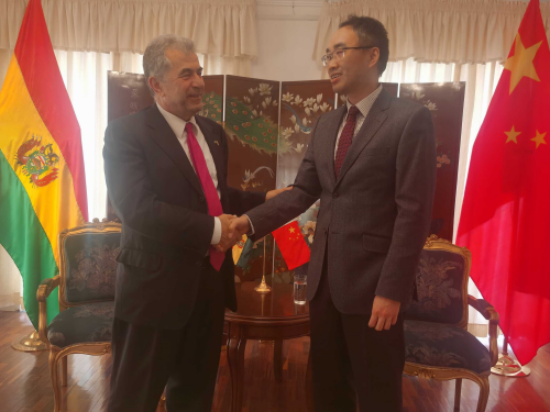 2024年4月26日,驻玻利维亚大使王亮会见巴勒斯坦驻玻大使埃拉瓦尼。