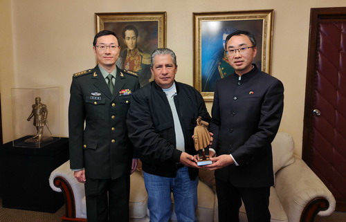 2024年5月7日,驻玻利维亚大使王亮拜会玻国防部长诺维略。