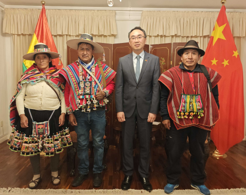 2025年10月8日,驻玻利维亚大使王亮会见玻土著民组织——高地土著民全国委员会(CONAMAQ)领导人乔克。