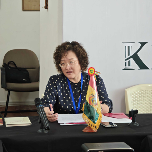 王总领事介绍了四中全会基本情况和《中共中央关于制定国民经济和社会发展第十五个五年规划的建议》具体内容,并以《建议》起草形成过程为例阐释中国共产党的民主决策机制和全过程人民民主。王指出,“十五五规划”贯穿以人民为中心的发展思想,擘画了未来五年中国经济社会发展蓝图,向世界宣示中国将继续扩大高水平开放,这将为包括玻利维亚在内的拉美及世界各国发展提供更多新机遇。王并回答外方关于中国政党制度、脱贫攻坚、台湾问题等的提问。