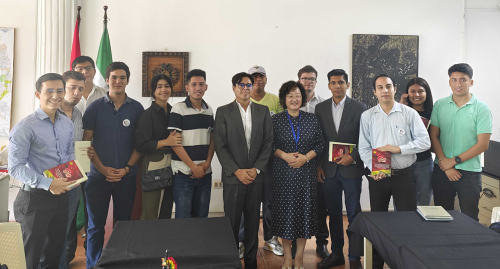 2025年11月4日,驻圣克鲁斯总领事王惠君赴圣克鲁斯政治学会宣介党的二十届四中全会精神。学会主席维加、政治学者、国政专业学生代表参加。