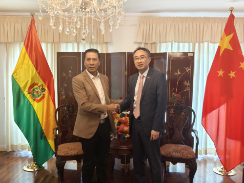 王大使介绍近年来中玻经贸合作成果,强调两国在发展战略对接和贸易、新能源、基建等领域深化交流合作面临广阔前景。对方高度评价中国现代化发展取得的卓著成就,表示中国是玻经济社会发展不可或缺的伙伴,愿推动新一届议会、政府同中方加强沟通协调,在农业、环保、交通、科技创新、教育等领域拓展务实合作。