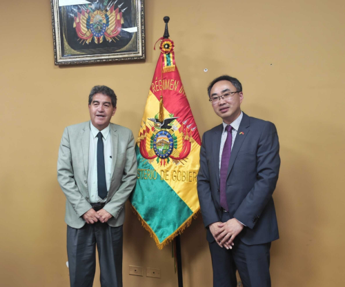 2026年3月12日,驻玻利维亚大使王亮拜会玻内政部新任副部长帕雷德斯。