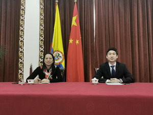 2020年7月14日,驻哥伦比亚大使蓝虎与哥伦比亚贸工旅游部外贸司司长富恩特斯、贸易关系司司长卡德纳举行视频会谈,就双边贸易、投资等议题交换意见。双方一致认为,经贸合作是两国关系的“压舱石”,在中哥建交四十周年之际,双方将共同克服疫情影响,继续共同构建公正、透明的贸易环境和友好、互惠的贸易关系,为两国关系行稳致远作出贡献。