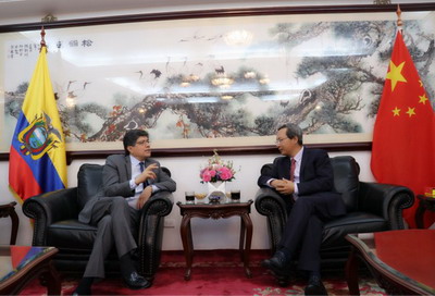 2018年11月23日晚,应驻厄瓜多尔大使王玉林邀请,厄瓜多尔外长瓦伦西亚做客驻厄使馆,双方就两国关系等交换了意见和看法。