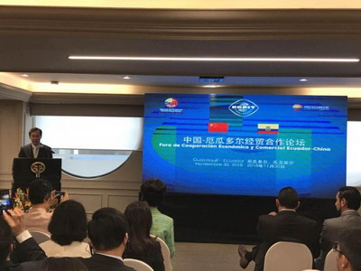 2018年11月30日上午,驻厄瓜多尔大使王玉林应邀出席在瓜亚基尔举行的中国—厄瓜多尔经贸合作论坛开幕式并致辞。