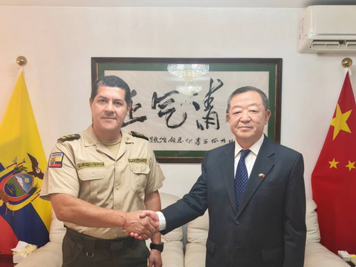 2025年12月16日,驻瓜亚基尔总领事高振廷会见厄瓜多尔国家警察第八警区杜兰市警察局局长比利亚维森西奥。