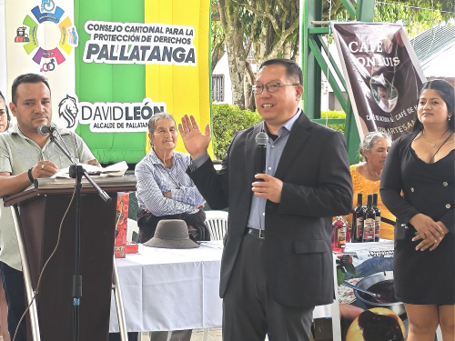 2026年4月12日至13日,驻厄瓜多尔大使孙向阳访问钦博拉索省帕利亚坦加市,与该市市长戴维·莱昂进行亲切友好会面。
