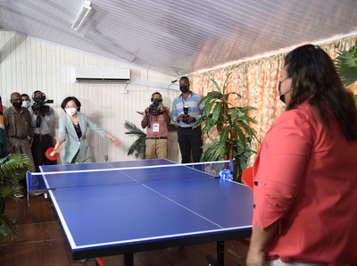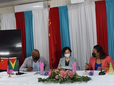 2021年11月2日上午,驻圭亚那大使郭海燕出席我援助圭教育部第二批乒乓球器材交接仪式,并与圭教育部长马尼克钱德、圭乒乓球协会主席芒罗签署交接证书。圭教育部首席教育官赫特森、各行政区教育官、受助学校师生等40余人出席。
