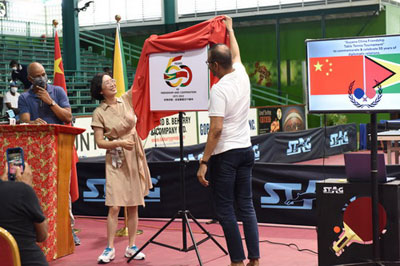 2022年2月27日,驻圭亚那使馆与圭乒乓球协会在圭首都乔治敦联合举办中圭乒乓球友谊赛。赛前,驻圭亚那大使郭海燕与圭外交和国际合作部外事秘书佩尔绍德一起揭晓了由双方共同设计的庆祝中圭建交50周年标志,正式拉开了今年系列庆祝活动的序幕。