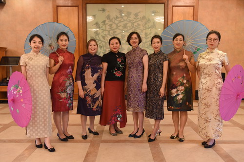 妇女节前夕,使馆联合在圭中资企业、医疗队、孔子学院及华侨华人女性代表演出旗袍秀,并通过新媒体在线上播放。伴随着国风音乐悠扬婉转的曲调,大家身着各色精美旗袍,或执红伞,或摇香扇,莲步轻移款款走来,举手投足充满独特东方风韵,尽显中国女性自信美好形象。