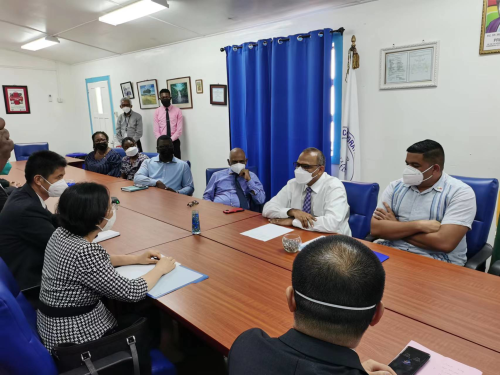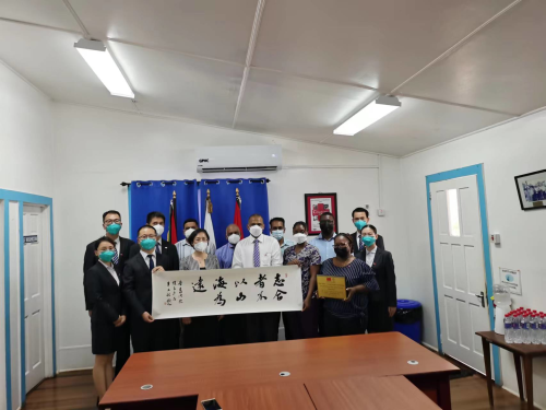 2022年4月14日,驻圭亚那大使郭海燕与圭卫生部长安东尼共同出席我对圭住院医师培训项目开班仪式。圭方培训承办单位负责人、参训医生代表、援圭医疗队员及当地媒体等参加活动。