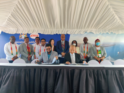 2022年5月25日,德莫拉拉河大桥项目商务合同签约仪式在圭亚那首都乔治敦举行,驻圭亚那大使郭海燕、圭公共工程部长埃奇希尔、财政部长辛格、司法部长兼总检察长南德拉尔、内政部长本、旅游工贸部长沃尔伦德、教育部长马尼克钱德、总理府部内部长麦科伊、公共工程部部内部长因达尔,圭财政秘书帕沙共同出席见证,中国铁建代表李东生、圭公共工程部常秘佩尔绍德代表双方签字,圭各界代表、媒体记者参加仪式。